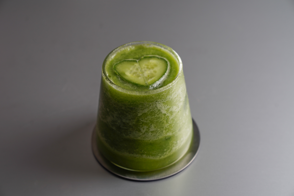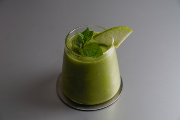 Healthy drink made with spinach, cucumber, apple, and ginger.
