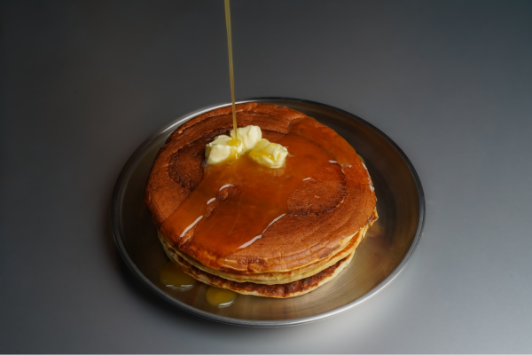 Soft pancake made with wheat flour, milk, eggs, sugar, and butter, freshly served.