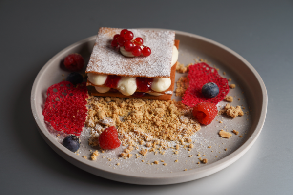 Slices of toast soaked in milk with a hint of vanilla, cooked until golden, and served with sauce or fresh fruits.