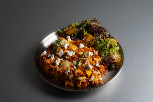 Traditional Arabic shakshuka with a touch of cheese and filo pastry.