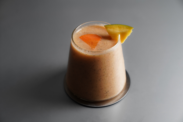 A natural drink made with mango, carrot, honey, passion fruit and soy milk.