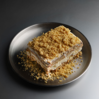A light and rich cake, topped with crunchy crumble and roasted hazelnut mix.